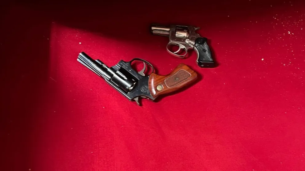 • Un revólver calibre .22 Italo Gra y un Taurus calibre .32 Largo, ambos sin documentación.