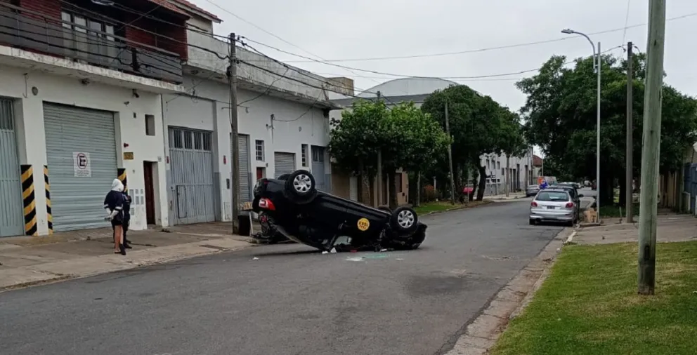 Según confirmaron fuentes oficiales, el conductor del taxi impactó contra dos autos estacionados antes de que el vehículo terminara volcado sobre la calzada.