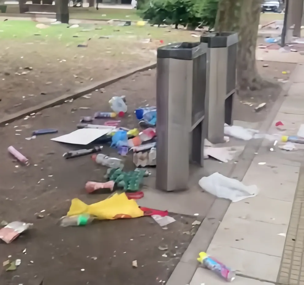 Según los testimonios de quienes circulan por la zona reflejados en un video enviado a este medio, la celebración dejó una gran cantidad de residuos esparcidos por la Plaza: cartones, carteles, serpentinas, papel picado, bolsas, latas de espuma y plásticos de todo tipo cubren gran parte del lugar. Un lector envió un video que evidencia la magnitud de la suciedad, mostrando cómo la plaza quedó completamente desordenada luego de la celebración.