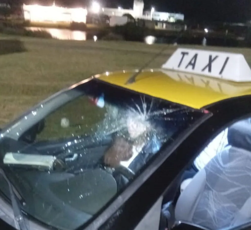 Más tarde, al retomar por Avenida de los Trabajadores, quedó atrapado por un segundo grupo. Allí ocurrió lo peor: un objeto punzante impactó contra una de las ventanillas del taxi, rompiendo el vidrio y esparciendo fragmentos dentro del vehículo.