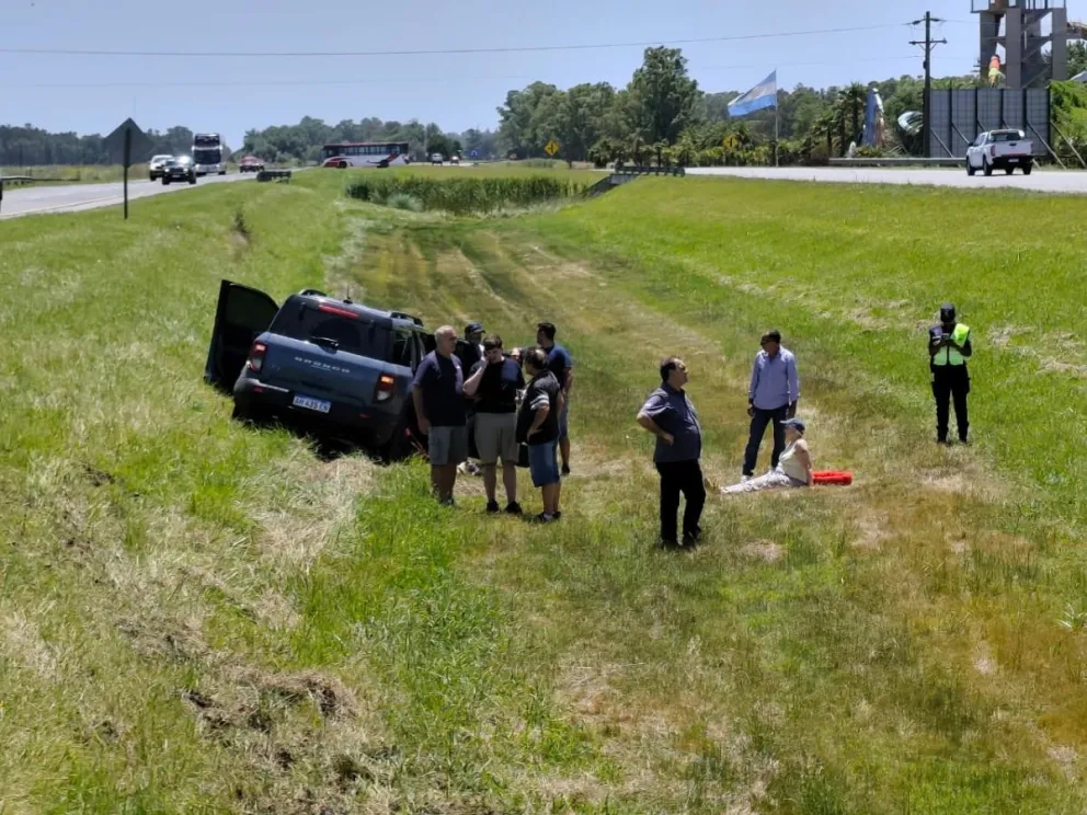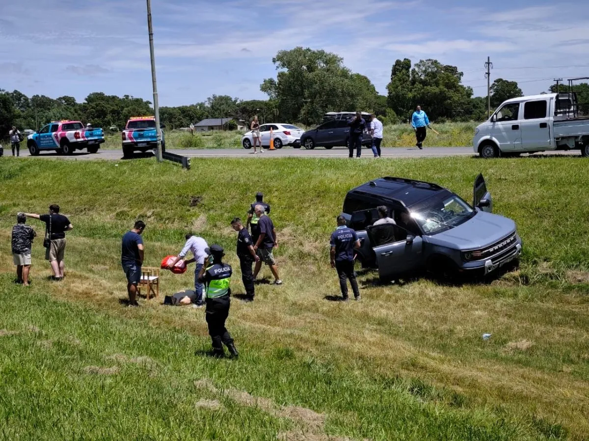 Un accidente en la Ruta 2 generó preocupación este viernes al mediodía, luego de que una camioneta Ford Bronco se despistara alrededor de las 12.30 en el kilómetro 386, frente al parque acuático Aquasol.