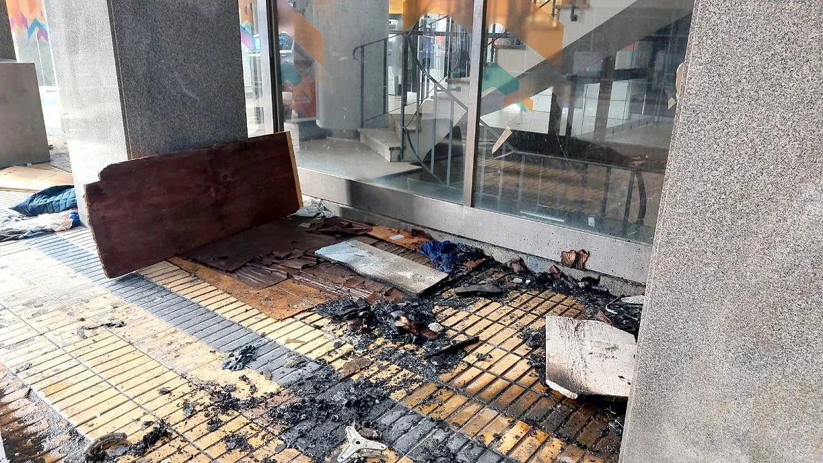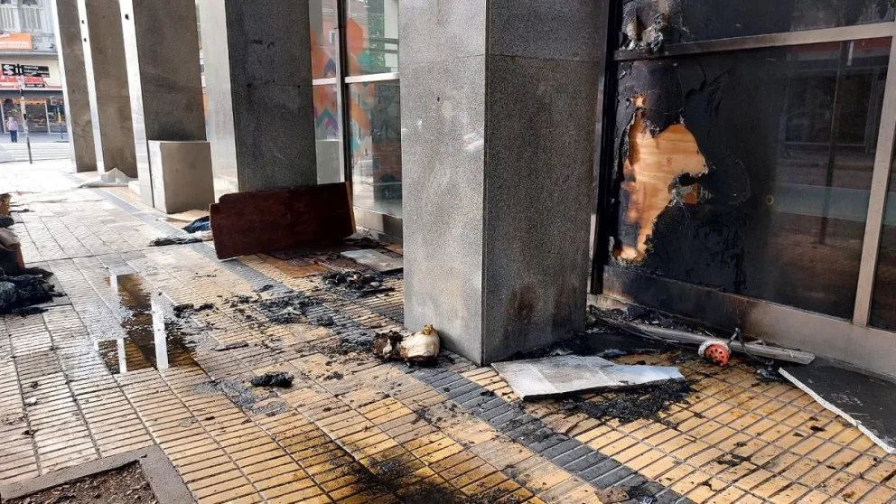 El foco ígneo se originó en el lateral del edificio, en un sector externo donde se encuentra el ingreso a los cajeros automáticos y donde un grupo de personas suele pernoctar, con la instalación de colchones, cartones y prendas de vestir.