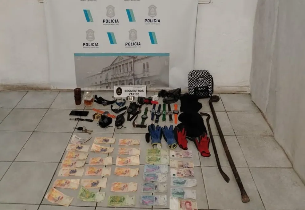 Durante el operativo se logró el secuestro de numerosos elementos, entre ellos un morral negro, $21.120 en efectivo, 12 relojes pulsera, dos perfumes, un teléfono celular, dos barretas metálicas, prendas de vestir, guantes, un pasamontañas y otros objetos presuntamente utilizados para cometer el robo.
