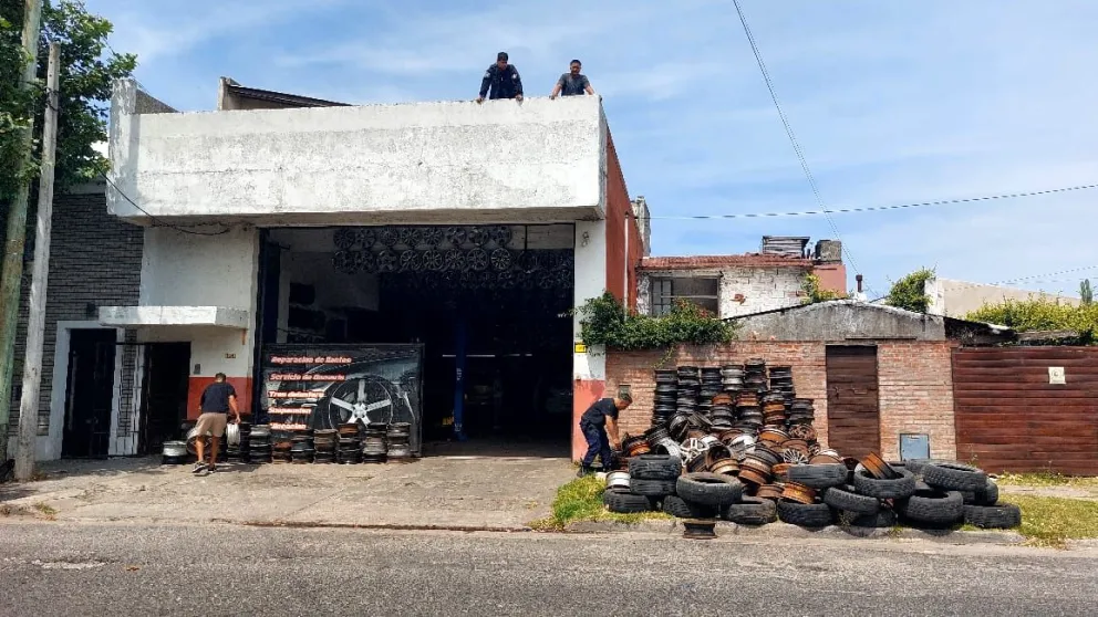 Un operativo policial en Mar del Plata secuestró más de 300 llantas usadas de una gomería en Peralta Ramos y 12 de Octubre; los responsables no pudieron justificar su origen.