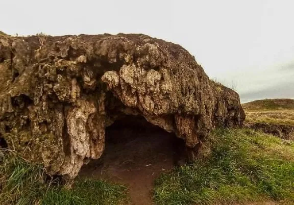 Al llegar al Quequén Salado, el único lugar por donde se podía cruzar era el llamado “Paso del Médano”, adonde Pacheco llega enfermo. Allí, en las orillas encuentra una cueva natural, se guarece y se queda ahí viviendo.  A partir de entonces, aprovechaba la pasada de tropas y carruajes y robaba hacienda, comía y vivía del producto de sus andanzas.
