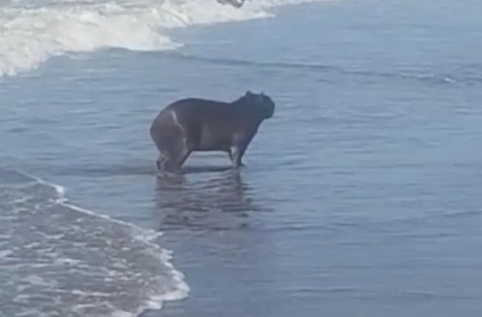 Sorpresa en una playa de Mar del Plata por la aparición de un carpincho