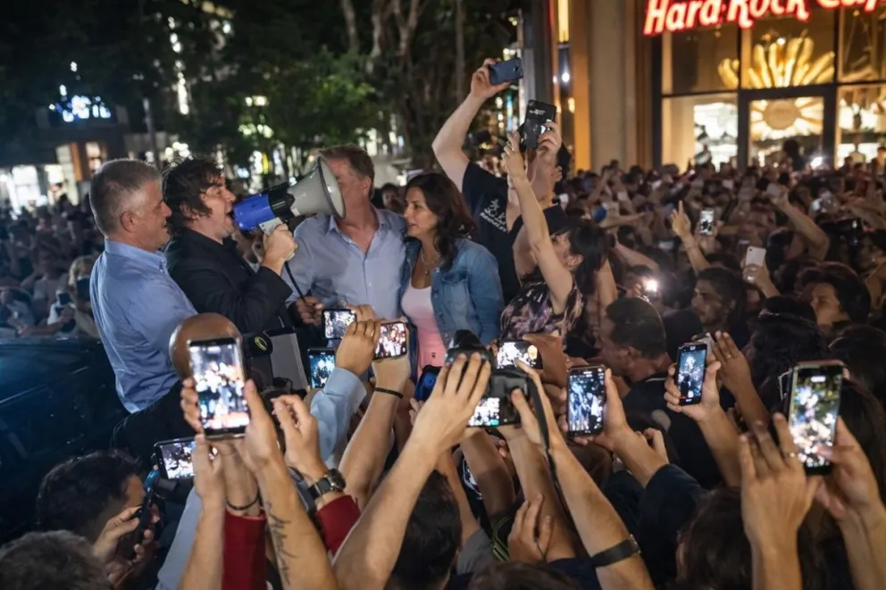 Antes de las 21.30, el presidente Javier Milei arribó al centro de Mar del Plata, en Avellaneda y Alvear, acompañado por su custodia oficial. La presencia del mandatario generó una reacción inmediata entre los presentes, que rompieron el cordón de seguridad para acercarse a saludarlo.