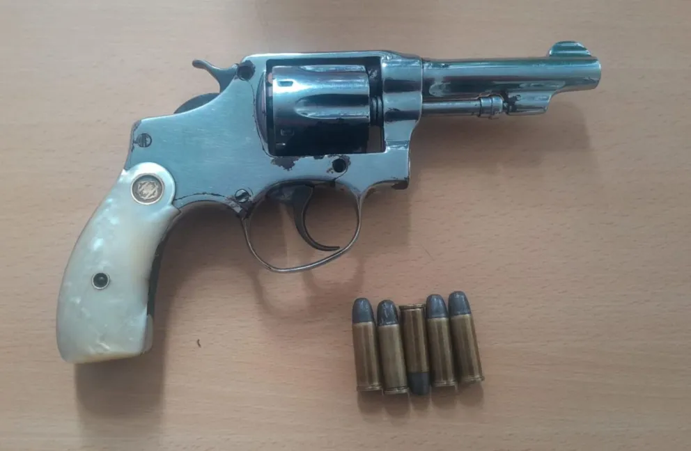 Se trata de un arma calibre 32 corto, con cinco proyectiles cargados en los alvéolos del tambor.