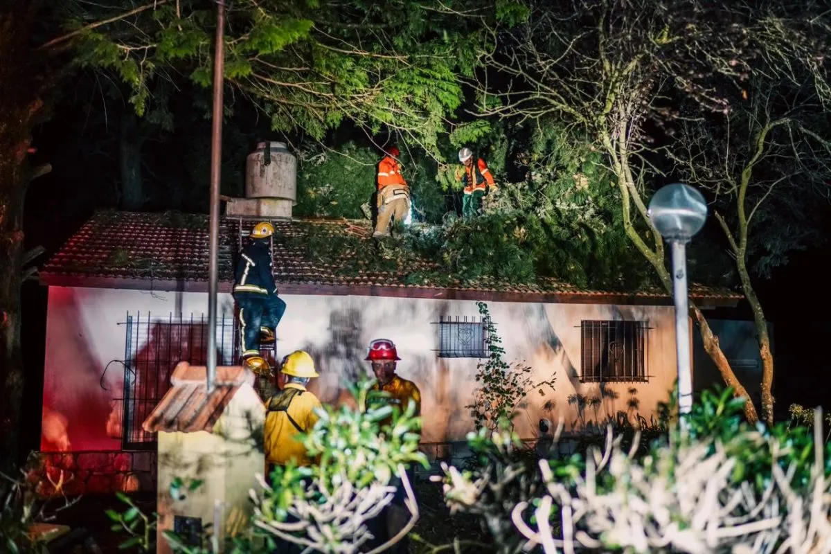 Para atender los múltiples trabajos, unos 40 bomberos se encontraban realizando las tareas necesarias para resolver los diversos problemas que dejó la tormenta, cada uno con su especificidad particular.