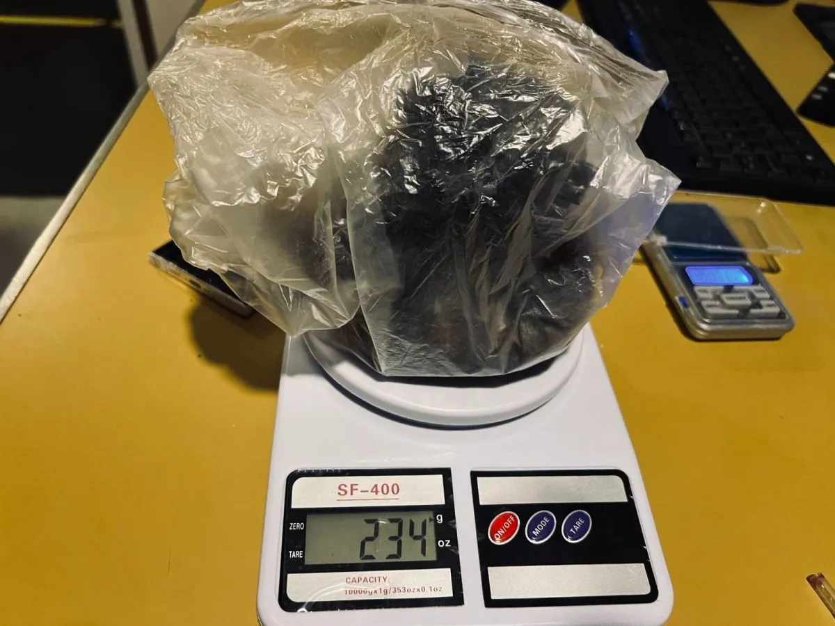 Se convocó a personal de la Delegación de Drogas Ilícitas que realizó el test orientativo correspondiente, el cual arrojó resultado positivo para clorhidrato de cocaína, con un peso total de 234 gramos.