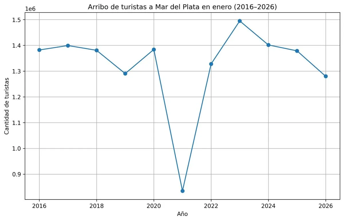 Datos a los que accedió Radio Brisas y que corresponden a mediciones realizadas en base a datos aportados por operadores turísticos confirman que entre el 1° y 31 de enero llegaron a Mar del Plata 1.279.849 turistas. Ese mismo mes de 2025 había registrado 1.378.520 arribos.