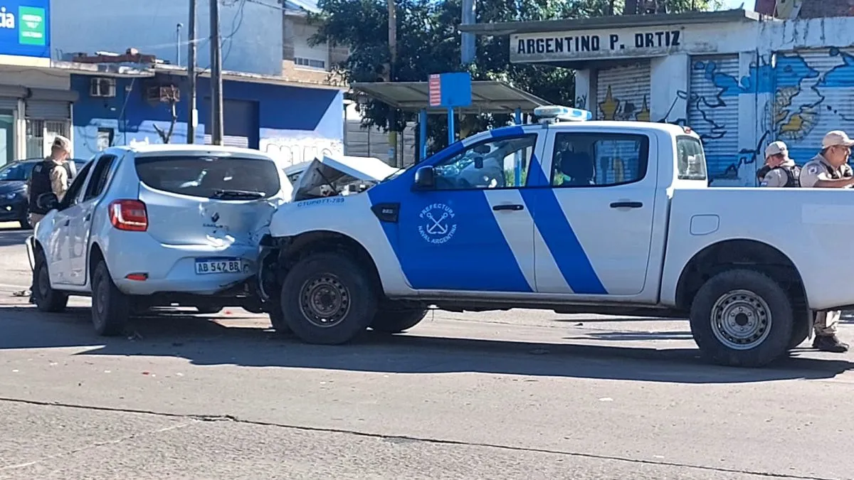 Un móvil de Prefectura Naval Argentina que iba en persecución de un motociclista impactó por detrás y con violencia a un automóvil que se encontraba detenido frente a un semáforo, sobre Avenida Fortunato de la Plaza y calle Juramento.