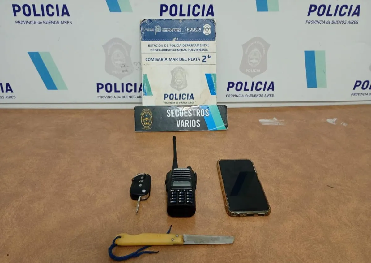 El detenido tiene 26 años y en el interior del automóvil en que viajaba se le secuestraron un handy tipo Baofeng con frecuencias activas, un teléfono celular marca Samsung,  una llave codificada de vehículo Peugeot y una navaja de aproximadamente 19 cm.
