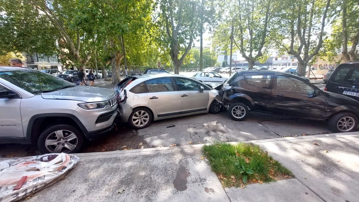 Cinco automóviles quedaron involucrados en un choque ocurrido en la esquina de Alvarado y Salta y originado en la maniobra de un conductor que buscó evitar el impacto contra otro vehículo en circulación y terminó golpeando a otros cuatro que estaban estacionados.