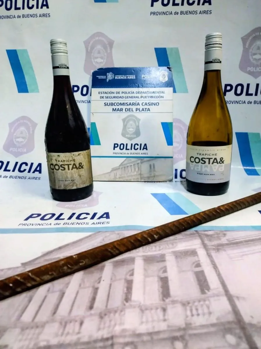 Lograron dar con este sujeto de 47 años que cargaba con una varilla de hierro de gran porte y un par de botellas de vino en una bolsa. También presentaba una herida cortante en manos, coincidente con algunas manchas de sangre que habían quedado en el lugar del hecho.