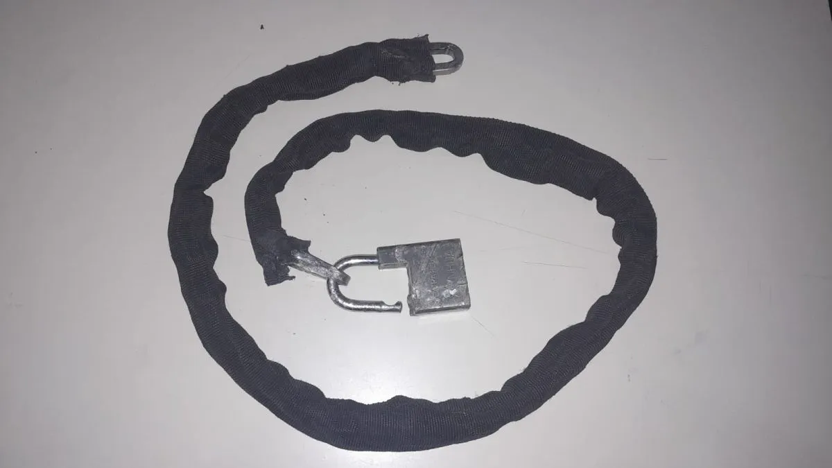 La moto, modelo Titán de 150 cc, presentaba daños en el tablero y tambor de ignición y también en la óptica. El candado ya estaba dañado y desprendido de la cadena metálica, que también fue recuperada en el lugar.
