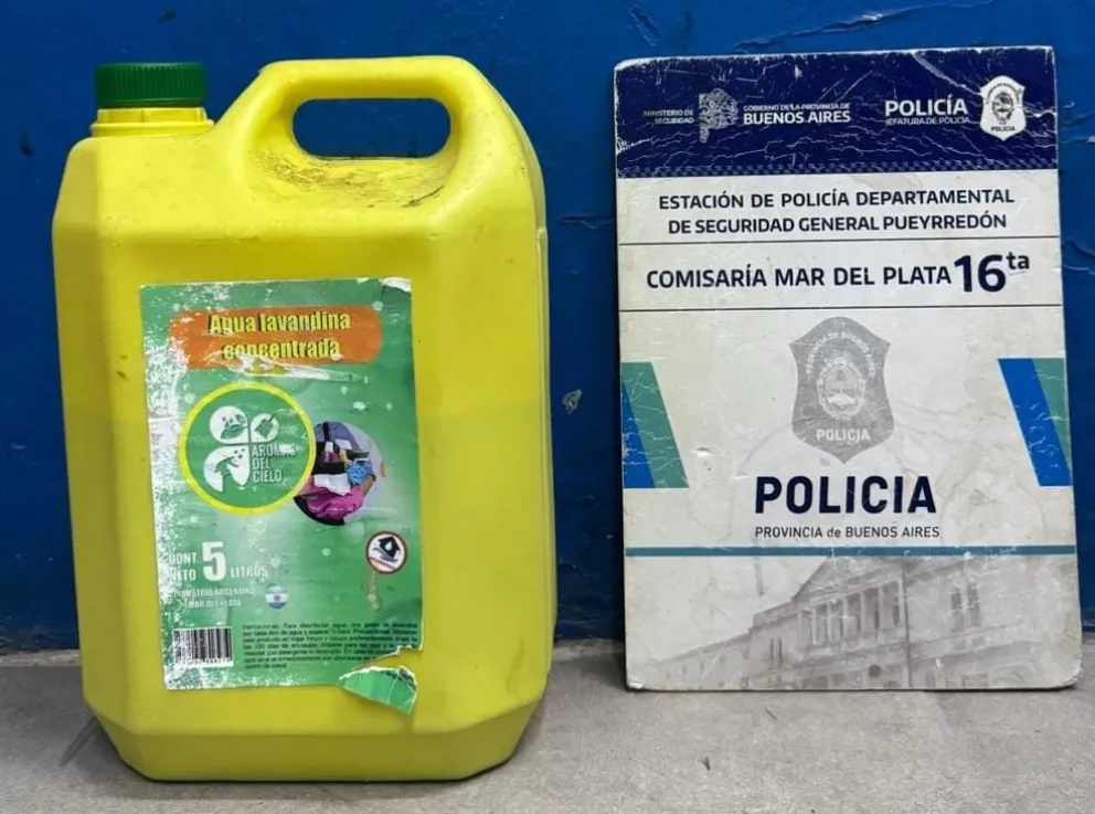 En el sector de estacionamiento del inmueble donde la mujer quedó encerrada se pudo secuestrar un bidón con restos de combustible, similar al que se había arrojado en el departamento de la víctima.