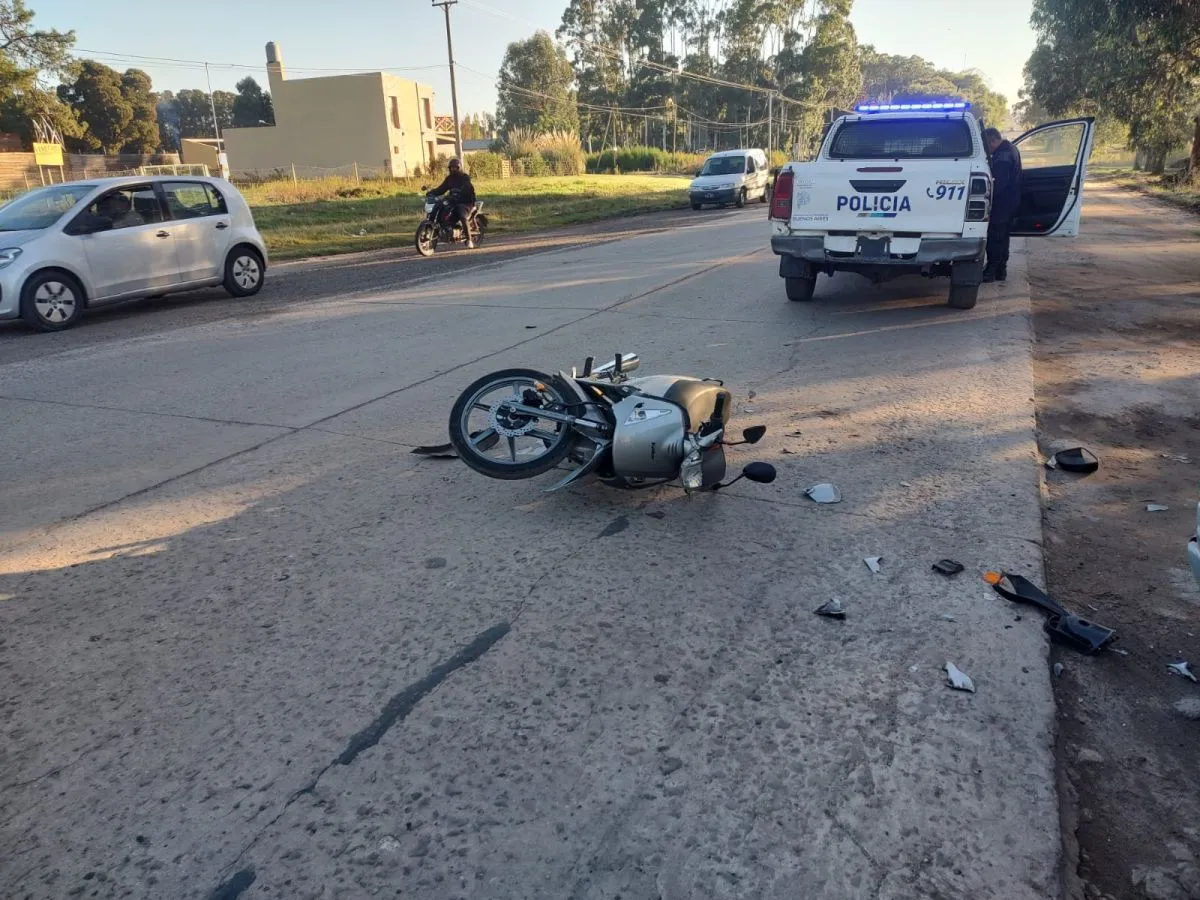 Sobre el pavimento quedaron algunos restos de la carrocería de la motocicleta e incluso piezas parciales del paragolpe del automóvil, daños consecuencia del choque entre ambos vehículos.