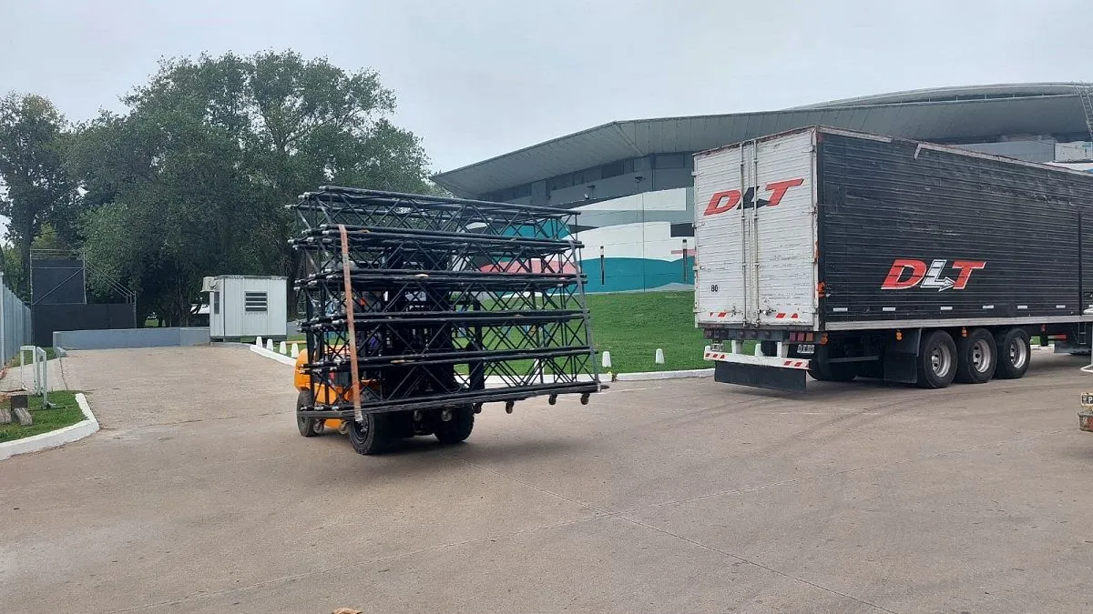 El armado del escenario comenzó con cuatro camiones y la llegada de otros cuatro, algo poco habitual para la ciudad. La estructura incluye 350 metros de pantalla, láseres, proyecciones y un montaje sobre el techo que crea un efecto visual especial, considerado la esencia del show.