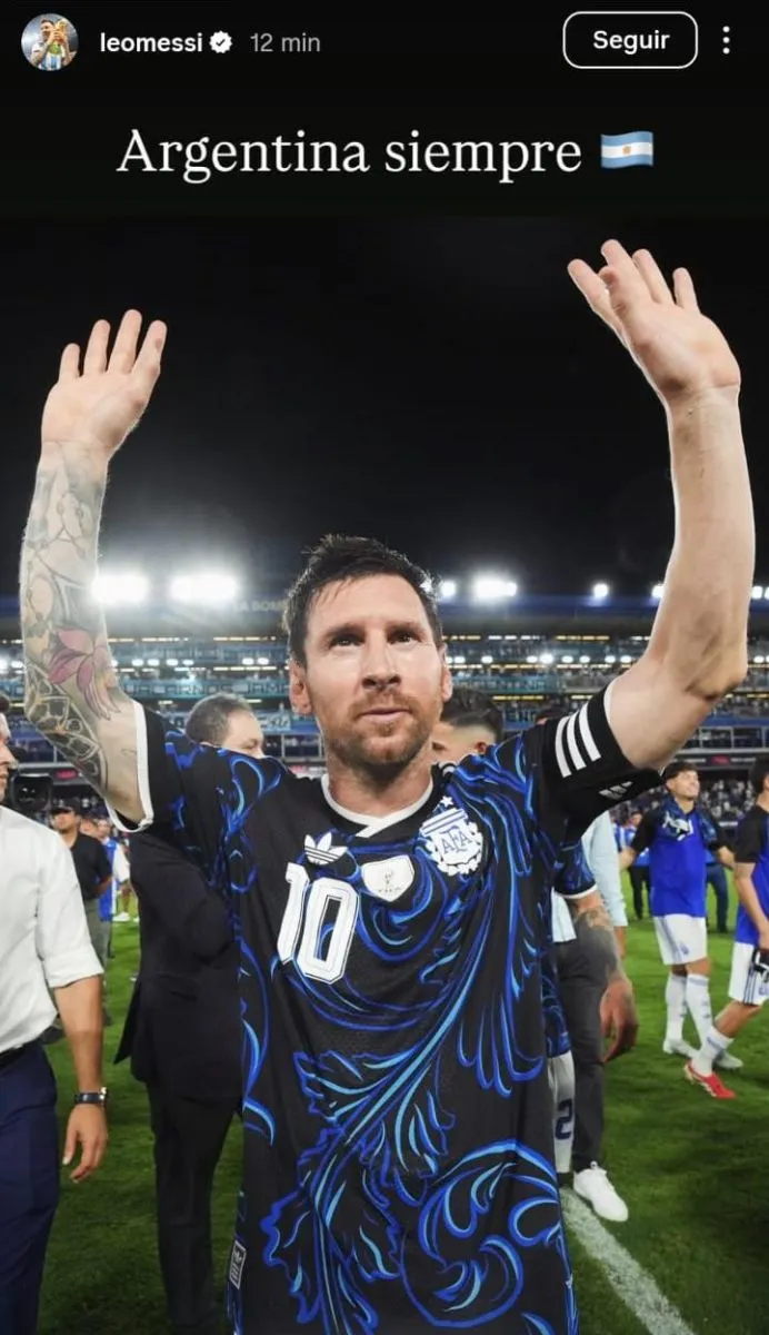 Este miércoles el ídolo nacional usó sus redes sociales para dejar un corto pero contundente mensaje: "Argentina siempre" junto con una foto de ayer en La Bombonera levantando los brazos, saludando a la gente.