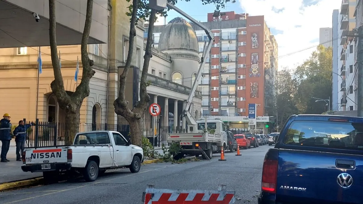 A esta situación se suman las tareas que lleva adelante una cuadrilla del EMSUR (Ente Municipal de Servicios Urbanos), que realiza trabajos de poda en la misma zona. Esta intervención, necesaria para el mantenimiento del arbolado urbano, contribuye a la reducción de carriles disponibles y complica aún más la circulación.