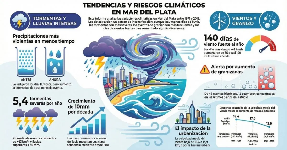 El informe concluye que el riesgo climático en Mar del Plata impacta directamente en la vida cotidiana, la economía local y el perfil turístico de la ciudad.