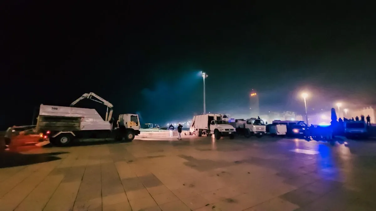 El operativo de limpieza del sector fue ordenado desde el propio municipio y ejecutado durante la madrugada con palas mecánicas y personal del Ente Municipal de Servicios Urbanos (Emsur) y el Ente Municipal de Vialidad y Alumbrado (Emvial).