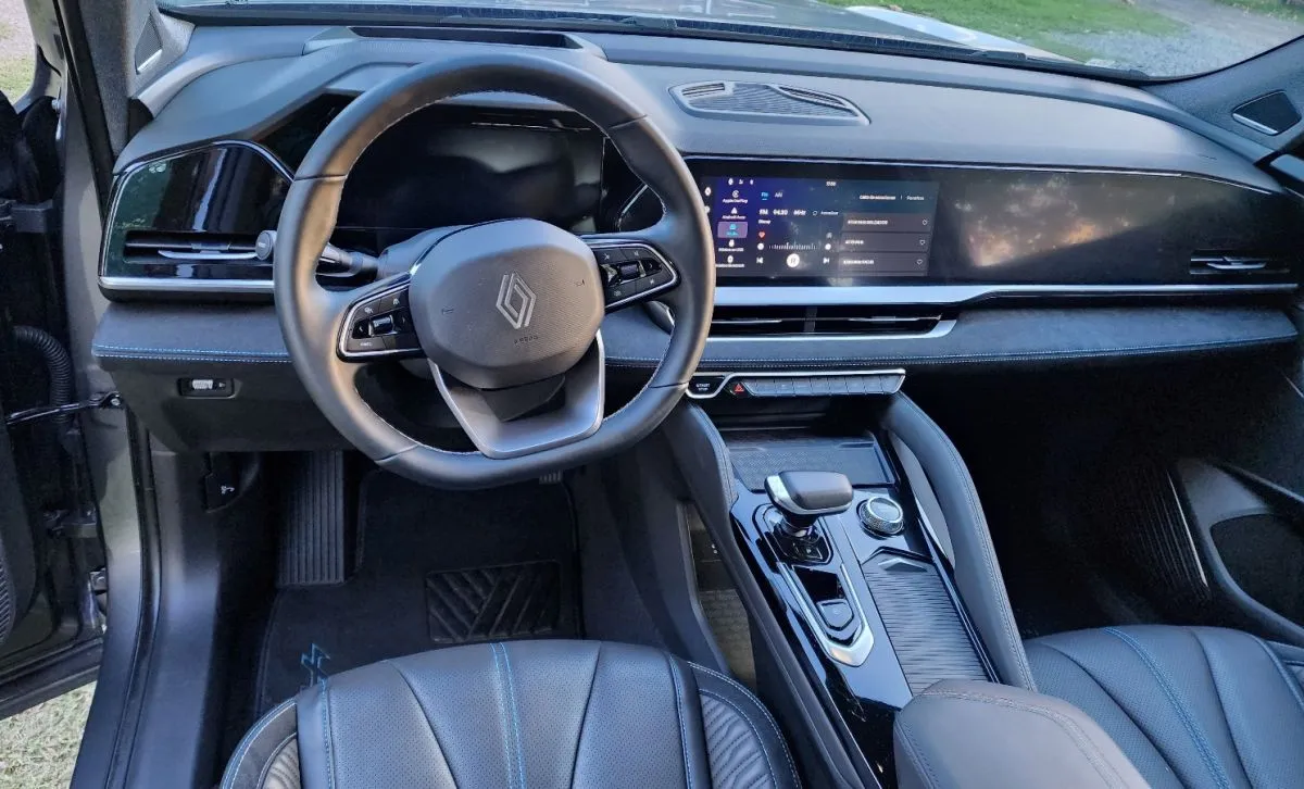 El exterior de la nueva Koleos es pura seducción, con abundancia de insignias azuladas por donde se lo mire, para darle identidad a la electromovilidad. De frente es desafiante, con una parrilla de proporción descomunal y símil de diamantes, que luego tiene una continuidad en la parte inferior de las defensas. Los faros son full led de muy buen poder lumínico en altas y bajas, coronados con dos cejas arriba y abajo para la marcha diurna. Visto de perfil, es todo fortaleza, elegancia, estilizado, con un largo de los que provocan que a este tipo de SUV se los denomine camionetas. Y de cola, hace honor a su nombre de Koleos, con un corte tradicional para este segmento, pero que parece dar otra apariencia ya que cuenta con luces conectadas por una línea led, más típicas de un deportivo. Ese conjunto lumínico atraviesa todo el portón eléctrico. Su baúl de doble piso alberga una capacidad de 545 litros y un auxilio temporal.