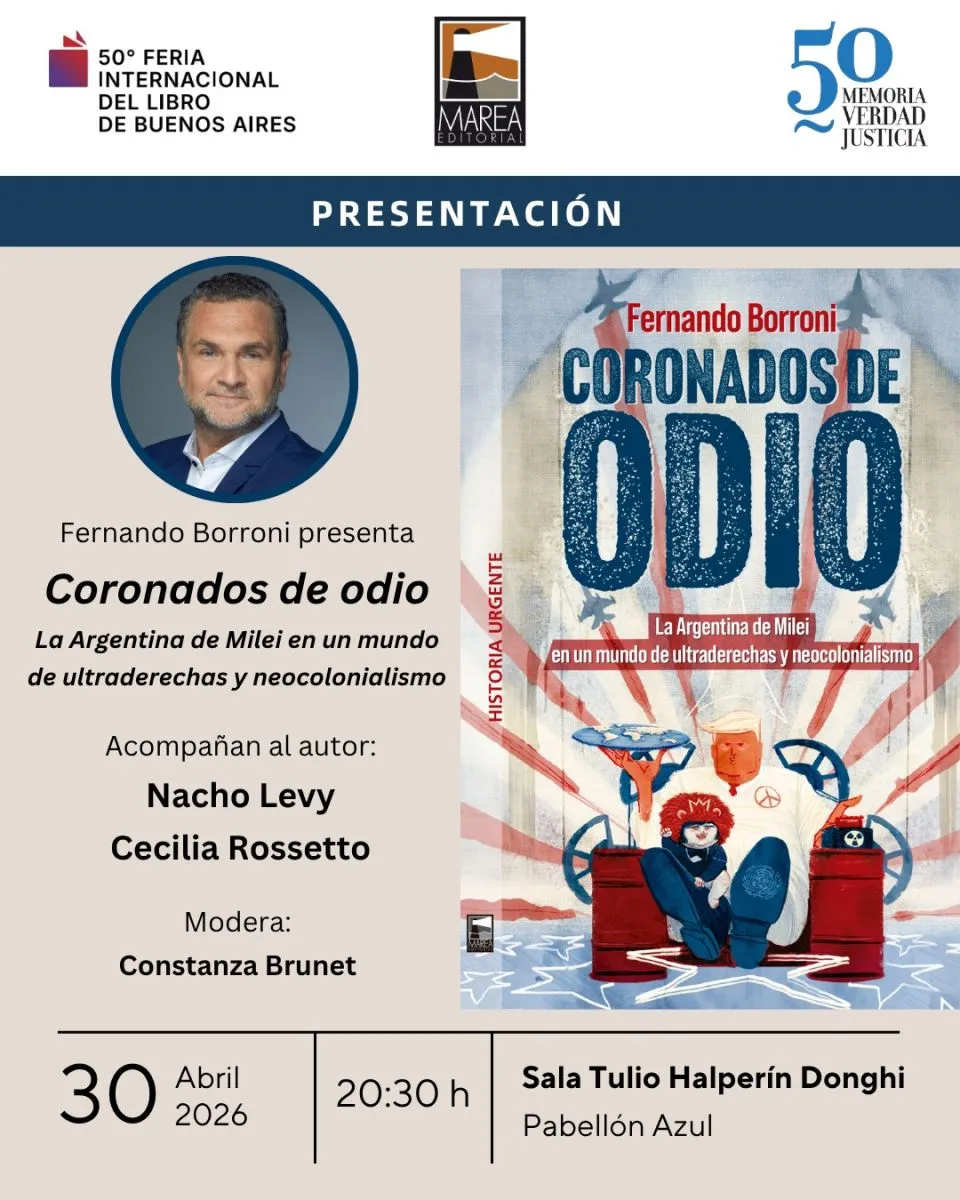 Fernando Borroni presenta su libro "Coronados de odio": una obra sobre la "épica de la destrucción" de Milei