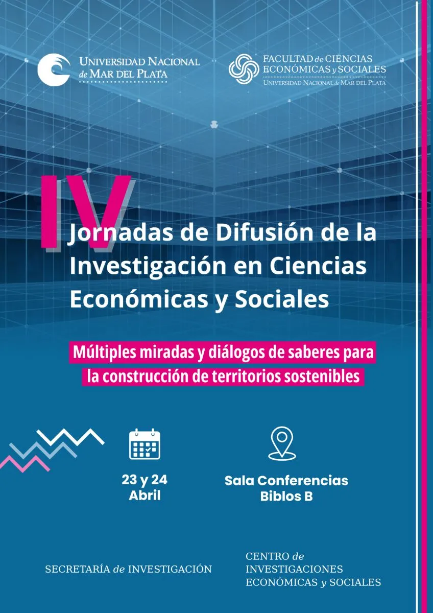 La Universidad Nacional de Mar del Plata (UNMDP), a través de la Facultad de Ciencias Económicas y Sociales, llevará adelante las IV Jornadas de Difusión de la Investigación en Ciencias Económicas y Sociales, un espacio de encuentro académico que se desarrollará los días 23 y 24 de abril.