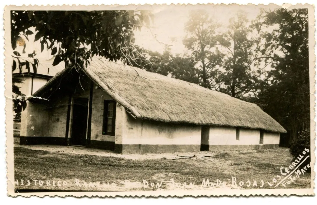 En 1820, el brigadier Rosas junto con algunos socios compró la estancia “Los Cerrillos” que se convirtió en poco tiempo en un centro agrícola ganadero muy importante. Allí mandó a construir su rancho de adobe. Era una construcción típica de la vida rural argentina, hechas con barro y paja y contaba con cinco habitaciones tipo chorizo, cada una con su entrada individual. Los techos estaban construídos con troncos de palmera, caña tacuara y paja trenzada.