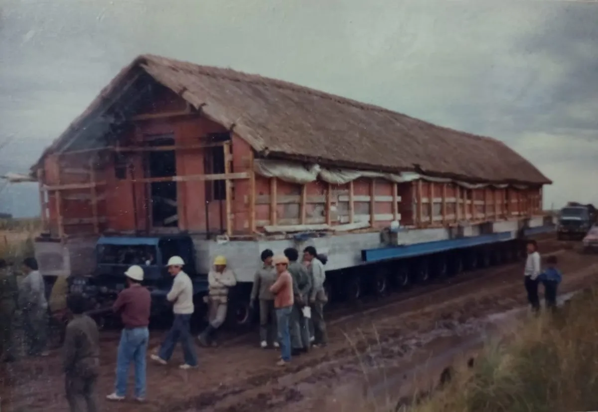 Cuenta Ludmila: “ Fueron dos meses de intensa labor para preparar el traslado. Trabajaron arquitectos, ingenieros, técnicos y operarios.  Se excavó por debajo del rancho, se le pusieron tres vigas de concreto de cinco metros de largo y ocho cruzadas de ocho metros de ancho copiando la base de las paredes. Por debajo de las vigas se colocó un sistema de gatos hidráulicos y se empezó levantar el rancho. Cuando se llegó una altura de un metro el pico más o menos se puso por debajo un carretón de 120 ruedas para poder moverlo y se apuntalaron las paredes para que no se rajaran.”