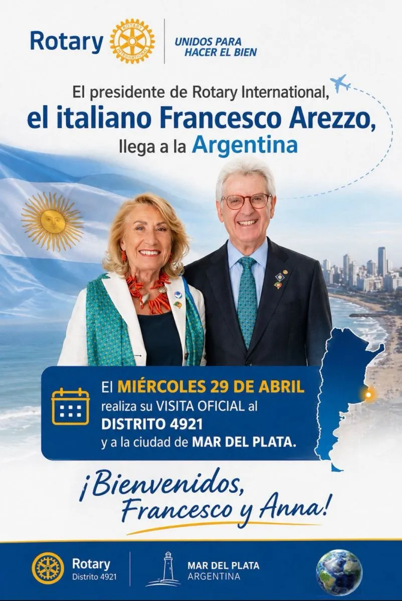 Luego de más de 30 años, Mar del Plata volverá a ser escenario de la visita del presidente de Rotary International, el italiano Francesco Arezzo, en el marco de su gira oficial por la Argentina.