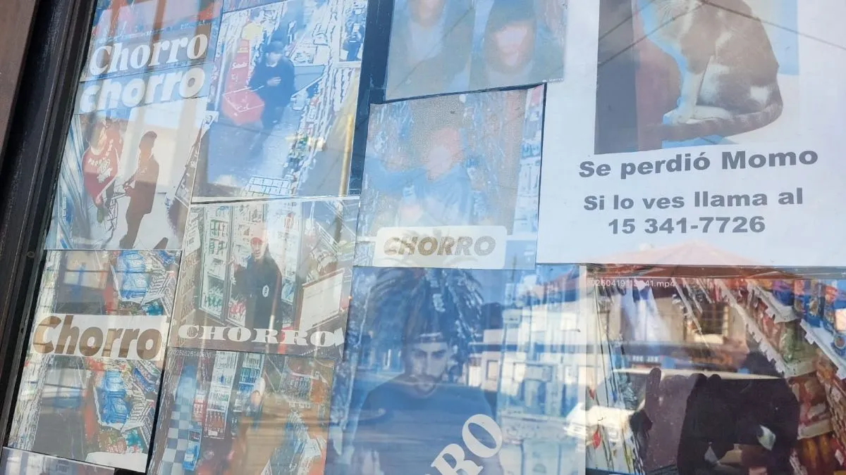 El comercio se encuentra en la esquina de Cerrito y Nápoles y en la vidriera que incluye la puerta de acceso principal tiene pegadas las imágenes de más de una decena de delincuentes que han cometido robos o hurtos en ese lugar.